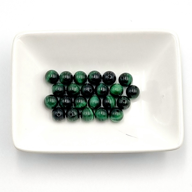 Farbe: Intensives, leuchtendes Grün, oft mit Schimmer- oder Chatoyance-Effekt (Katzenaugeneffekt), der typisch für Tigerauge ist.