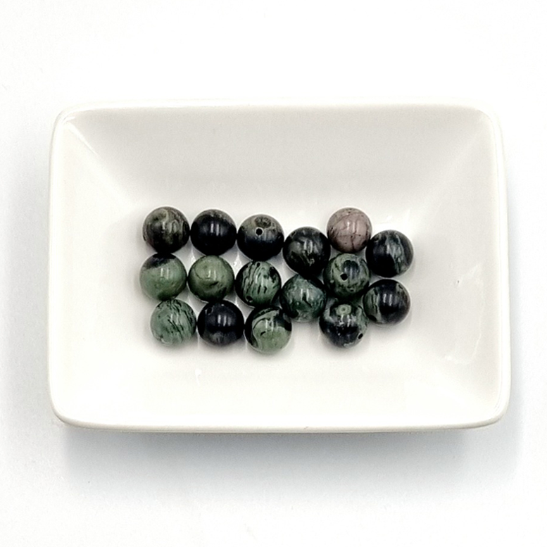 Farbe: Kambaba Jaspis hat vorwiegend grüne und schwarze Farben, oft mit marmorierten oder kreisförmigen Mustern, die an die Haut eines Krokodils erinnern, was ihm seinen Namen eingebracht hat.