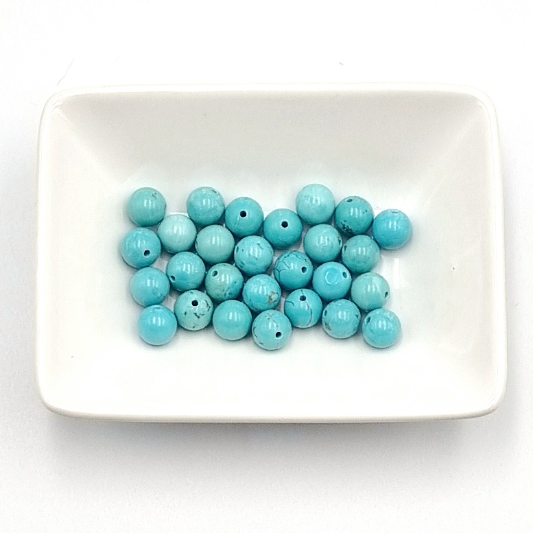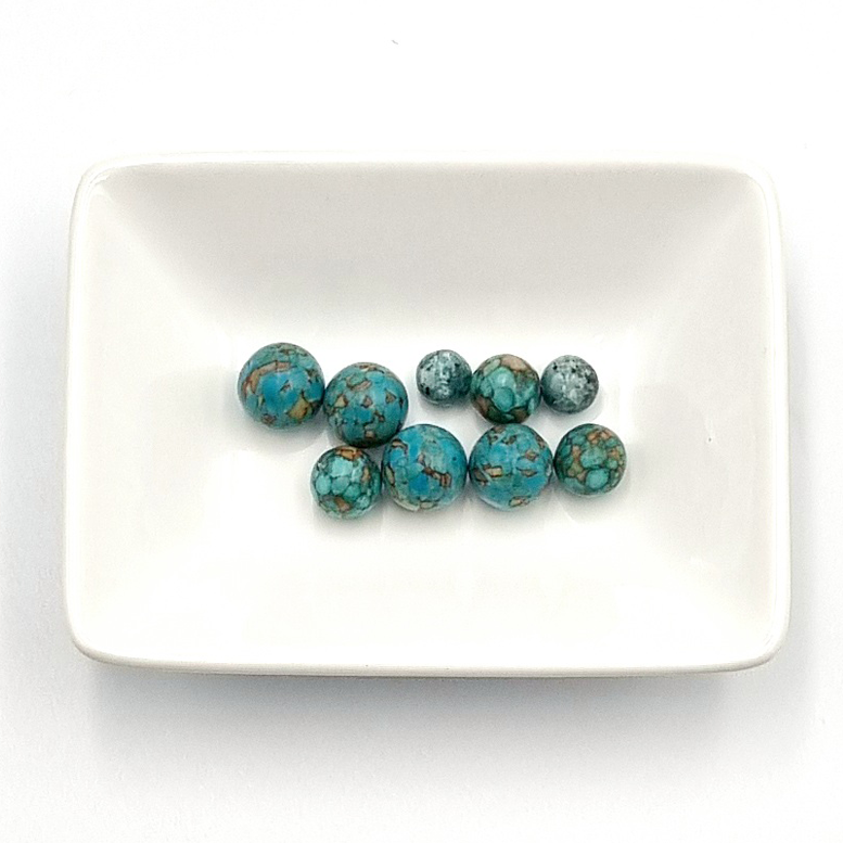 Magnesit ist ursprünglich weiß bis grau und wird dann durch Färbung in Türkis oder grünlich-blaue Töne umgewandelt.