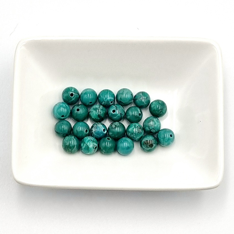 Farbe: Afrikanischer Türkis ist meist grünlich-blau und hat oft schwarze oder braune Adern und Einschlüsse, die ihm ein marmoriertes, lebendiges Aussehen verleihen.